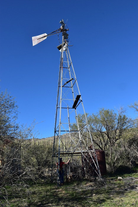 Deer Camp at 1.3 miles in. Aermotor windmill