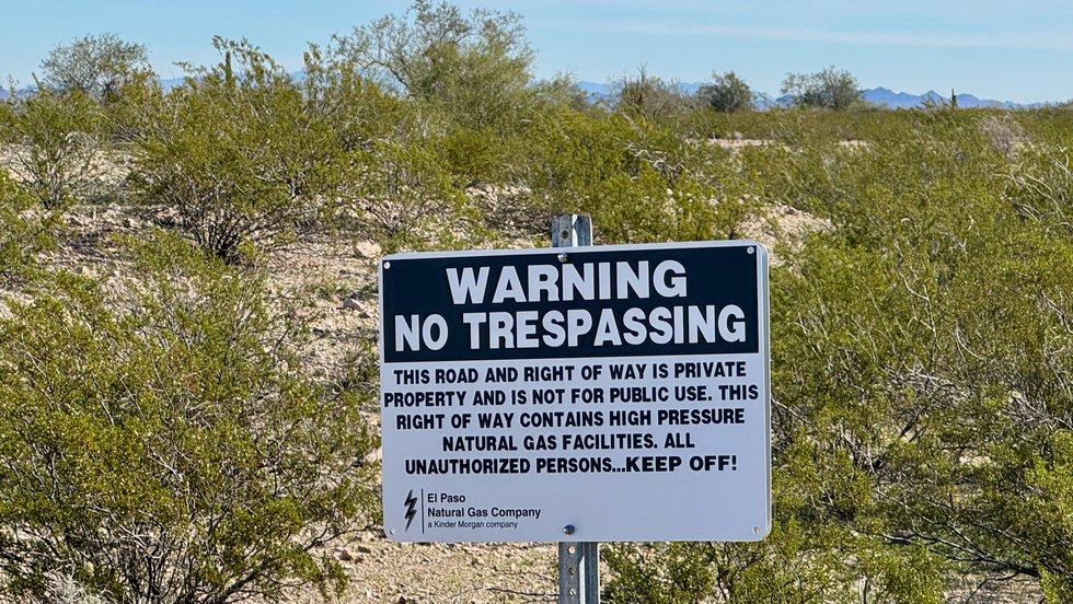 New (to me) signs on the access road to the wilderness. Maps I have found show no private property, though the state trust land may have been sold or leased, which would permit the lessee to restrict public access.