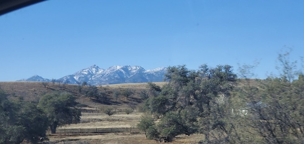 Looking West at Mt Wrightson and snow covered Santa Ritas on drive down AZ-83 S.