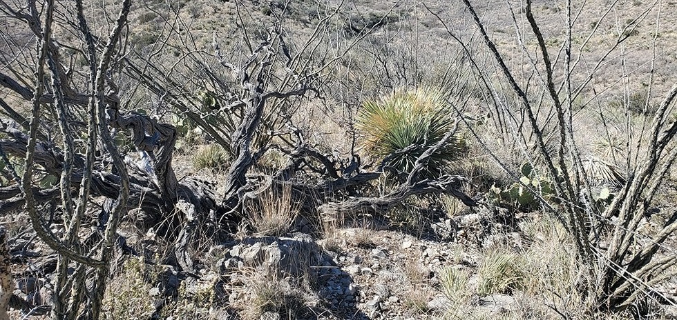 Looking down on a lot of dead brush along the ridgeline