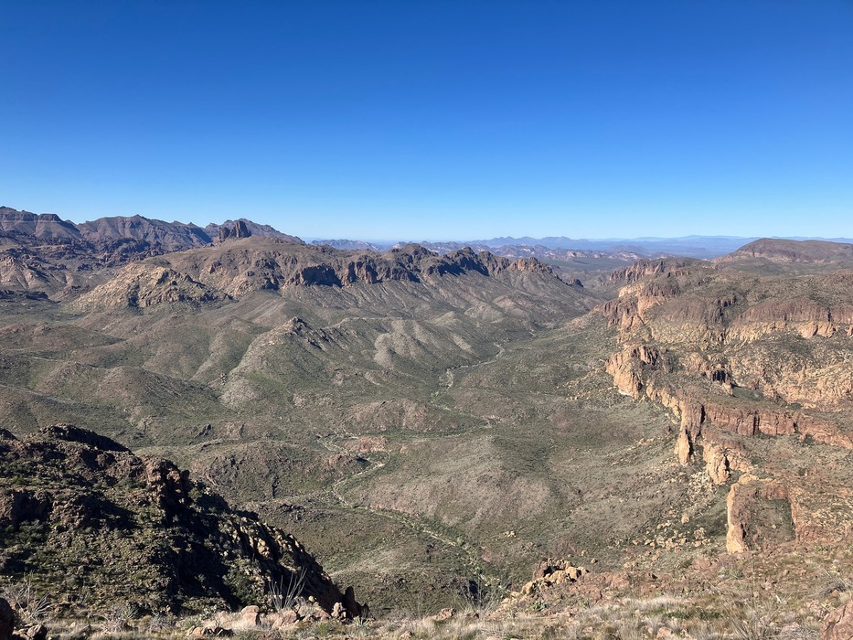 View NW from Picacho - Red Tanks Trail down below, Ridgeline/Weaver's/Bluff Spring Mtn beyond