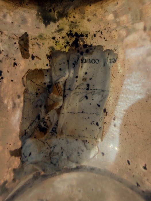 An old mining claim I assume? Was in a not quite waterproof old glass jar in a large cairn