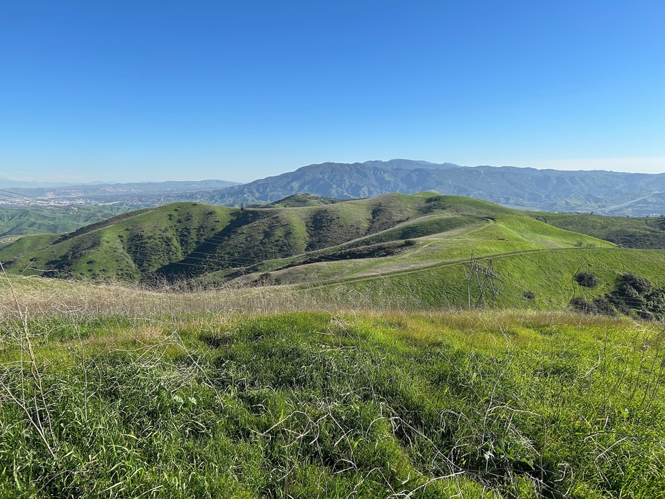 Chino Hills in the foreground and the spine of the Santa Ana Mountains in the back