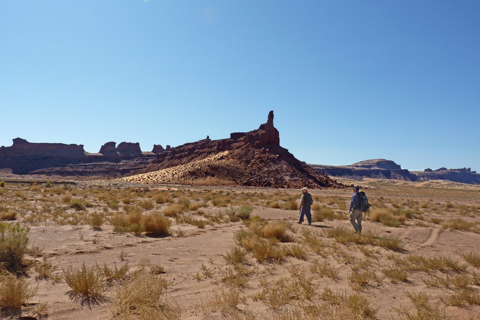 Page Rob and Mike make their way to the east with Moses Rock to their south.