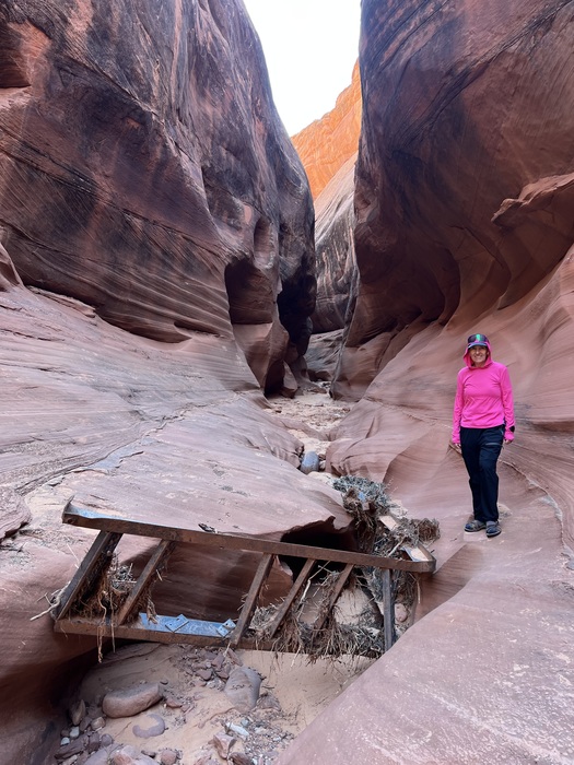 Mangled ladder washed down from the tourist section above.