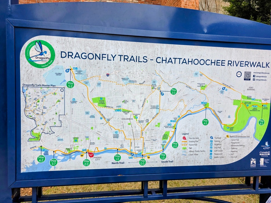 from the website: Description: Greenway trail along the Chattahoochee River, connecting through north downtown to the Fall Line Trace rail trail to northwest Columbus and a southern side path trail along MLK Boulevard.