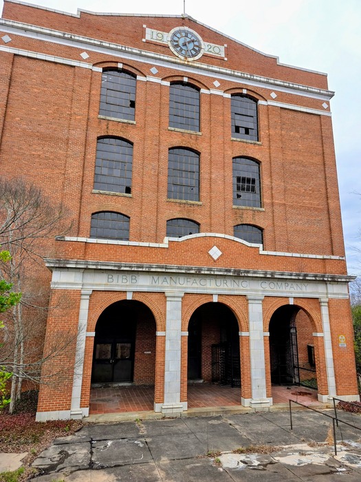 Looked like it was quite the building: The structure was the front office of a 750,000-square-foot mill that began in 1900 and expanded until 1920, as indicated by the clock on the facade.