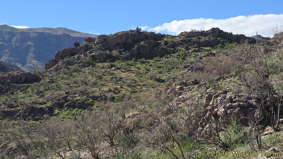 Peak 2950 from Black Mesa Trail #241. The below the opposite side of the peak is Dead Woman's Cave. 59.48° F