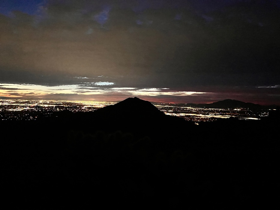 From the Skyline Crest Trail. Javelina Summit in black. City of Phoenix in white
