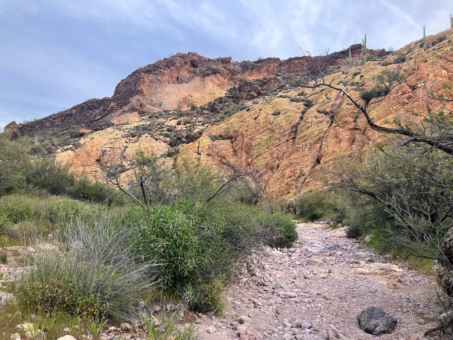 The wash was like this for most of the hike. Rocky, but not too bad. The sense of hiking through a canyon is starting to develop.
