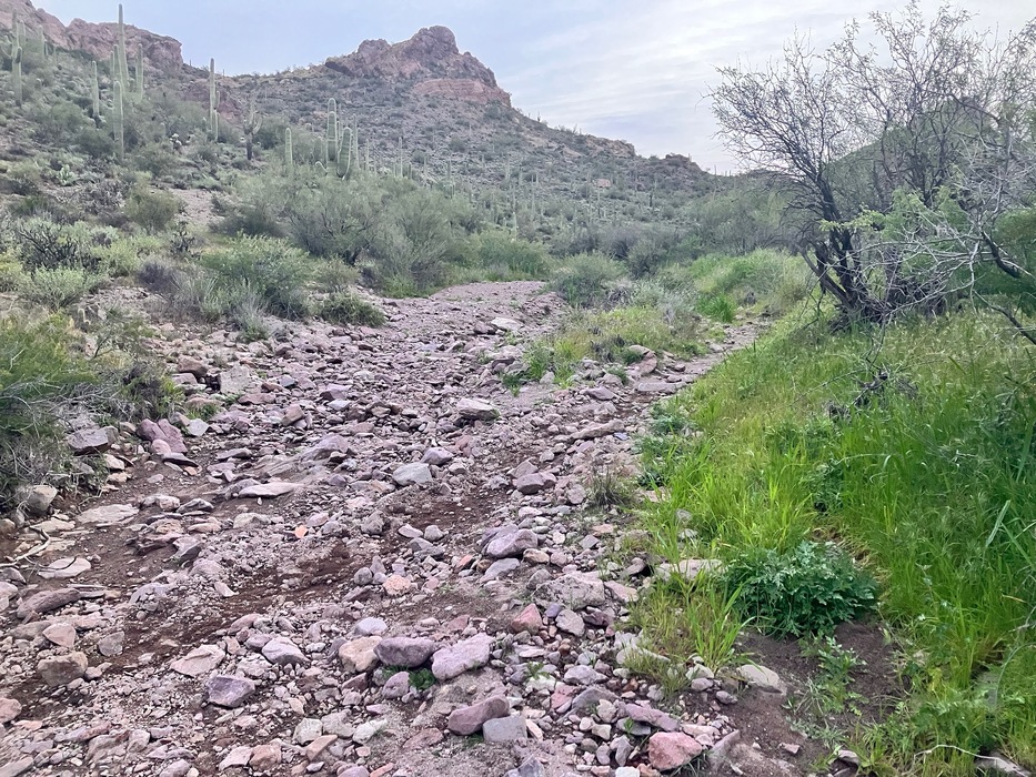 Another wash crossing done by the Rough and Ready Trail. The desert is doing very well from its recent rains.