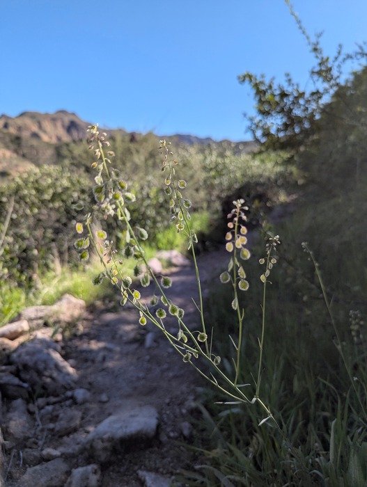 Interesting plant with little flowers and flat round pods.