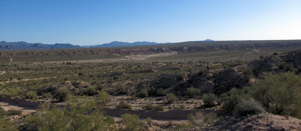 Looking down at Date Creek / Mud Flats area from the dispersed camping