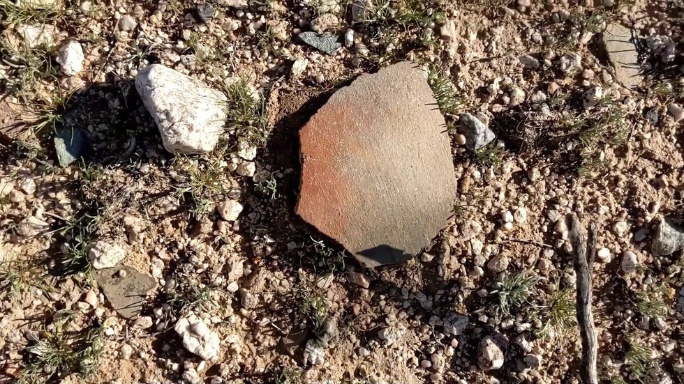 Most ot the pottery was plain gray, some brown. I didn't find any painted pottery. This platform mound (and presumably the surrounding sites) are Civano phase (1300-1450AD), at the end of the Hohokam. Painted pottery was earlier.