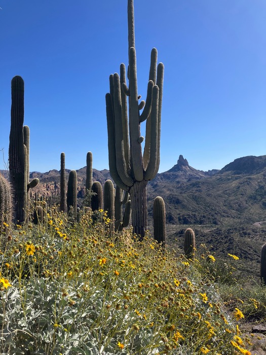 Saguaros and flowers on 3097