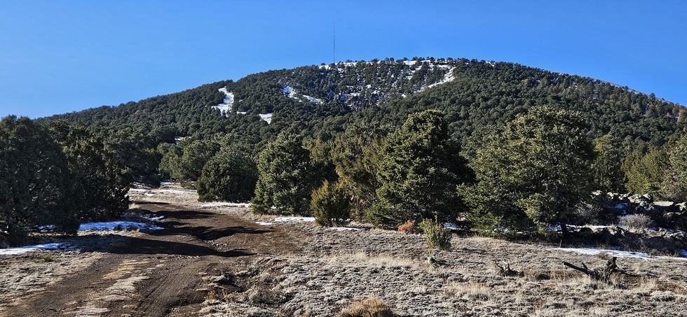 There's the hill. We'll be hiking up the white slash on the left, which curves around to the summit.