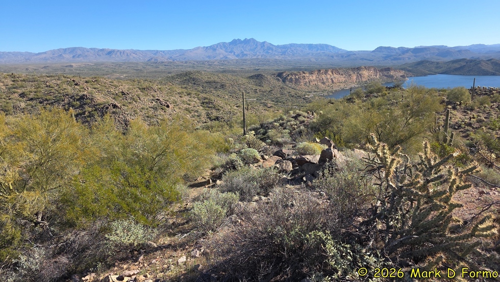 Four Peaks and Saguaro Lake from the long-unused equestrian trail. 74.84° F