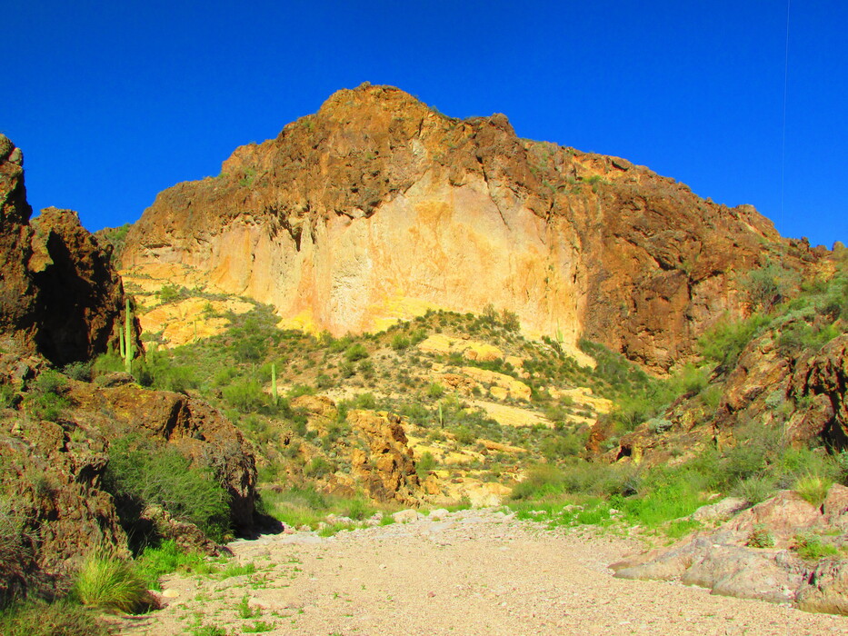 The canyon wall ahead marks the entrance to our climb that will lead us to approach triple arch from the west.