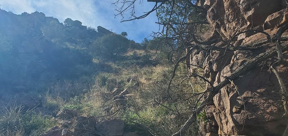 Looking up at the top of the butte