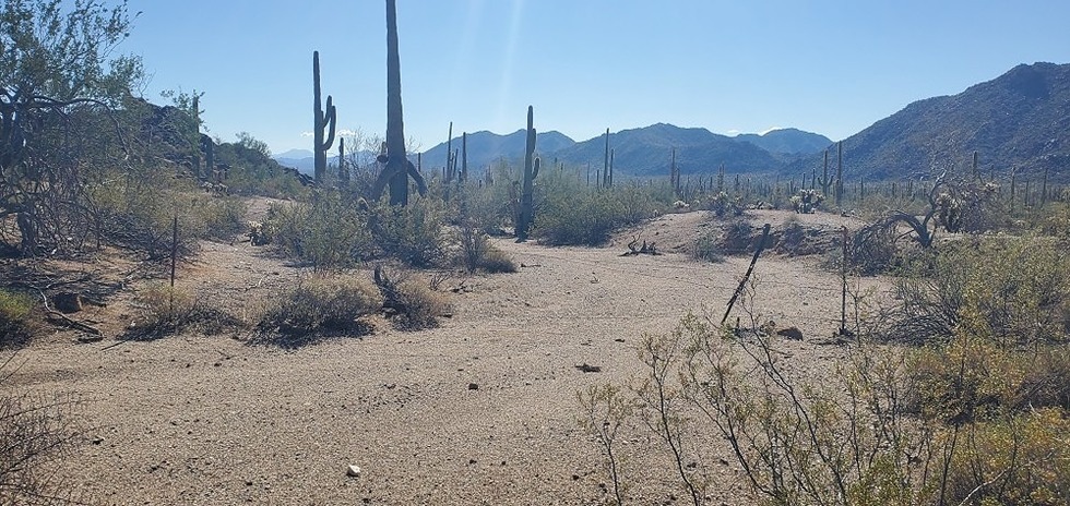 crossed a barbed wire fence in a wash and looking back