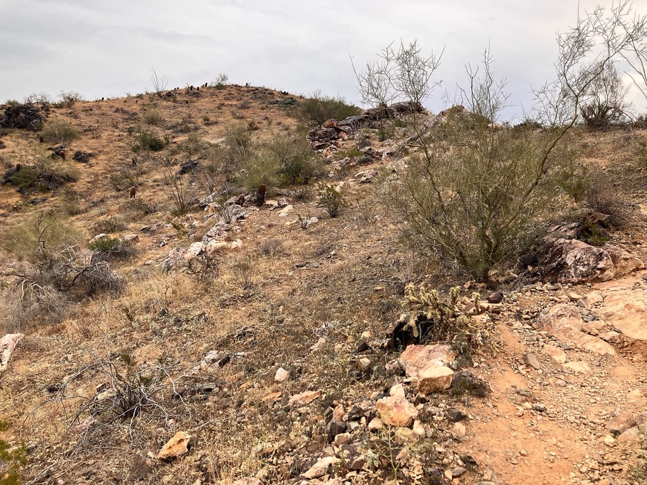 Looking at an old trail that goes from the National down to the Bajada. I hiked it years ago. Though faint, it’s kind of obvious once you get on it. It is seen as a faint indentation in the picture