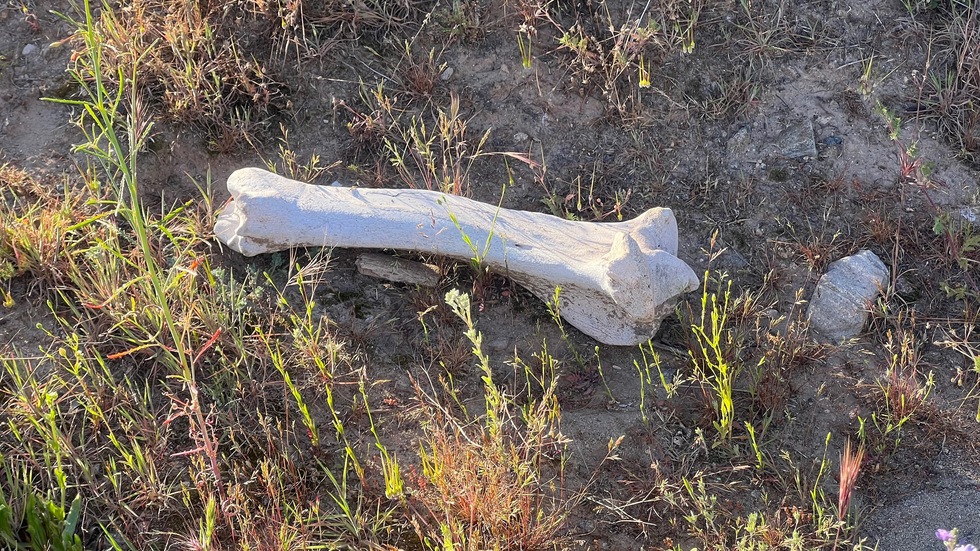 Cow bone. It's much larger than in the photo.