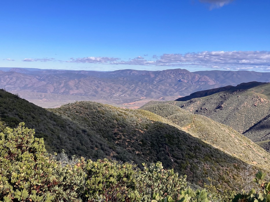 Manzanita covered hills. As you descended you could see the trail cutting a line through the manzanita