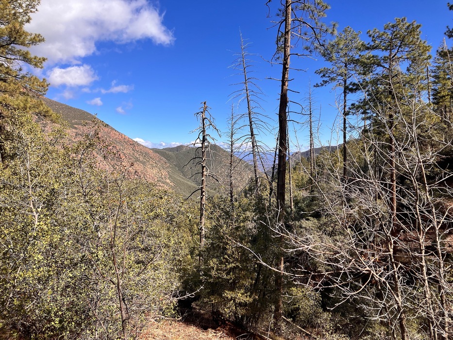 Half way the final ascent. Fire damage is obvious, but still a surprising amount of shade on the climb