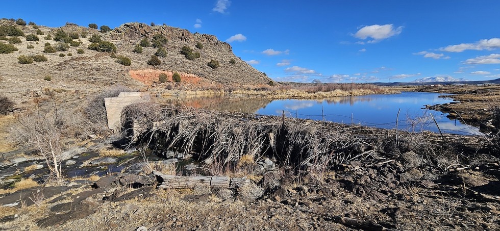 The dam, which was built to capture the water for the flume, which went downstream a couple of miles to run the water wheel for the hydroelectric plant, built in 1927.