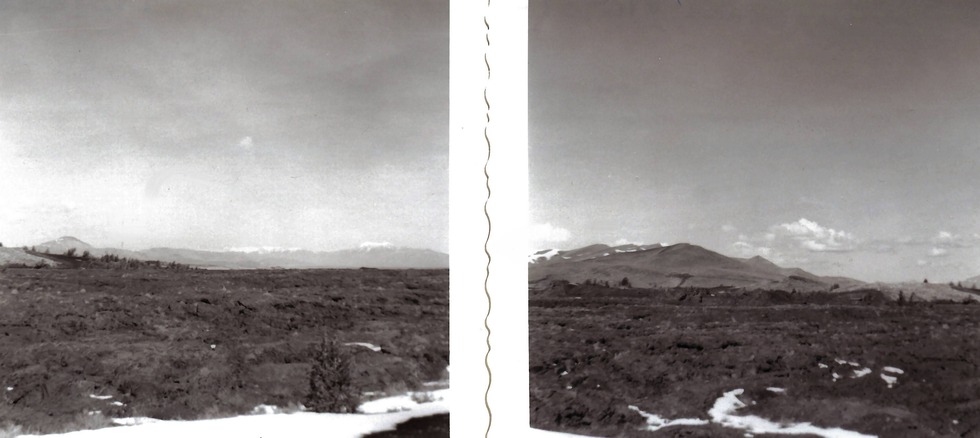 Craters of the Moon in January 1955, two of the five pictures my parents took on their drive from Morro Bay to the farm in Montana after their second try at marriage. Long story.