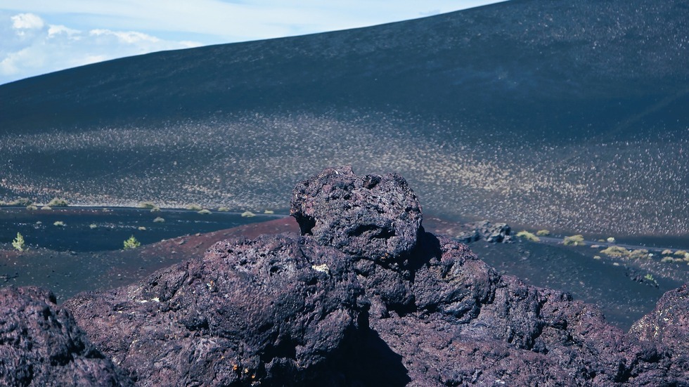 This is still **basaltic lava**, but it is highly vesicular—meaning it is filled with tiny holes from gas bubbles that were trapped as the rock solidified instantly.