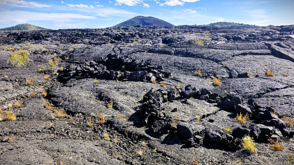 Teepee rings, or stone circles, left behind by the Shoshone-Bannock people are among the most visible archeological artifacts at Craters of the Moon National Monument and Preserve. These circular rock formations were used to weigh down the edges of skin-covered teepees and can be found along the trail near Indian Tunnel.
