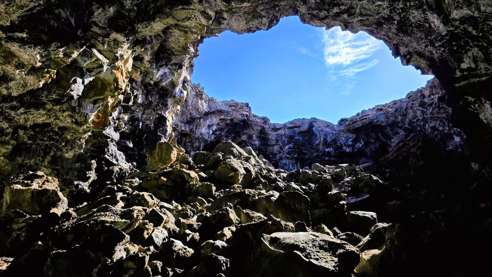 One of two skylights; a collapsed section of the lava tube, often referred to as a skylight; or cave-in.