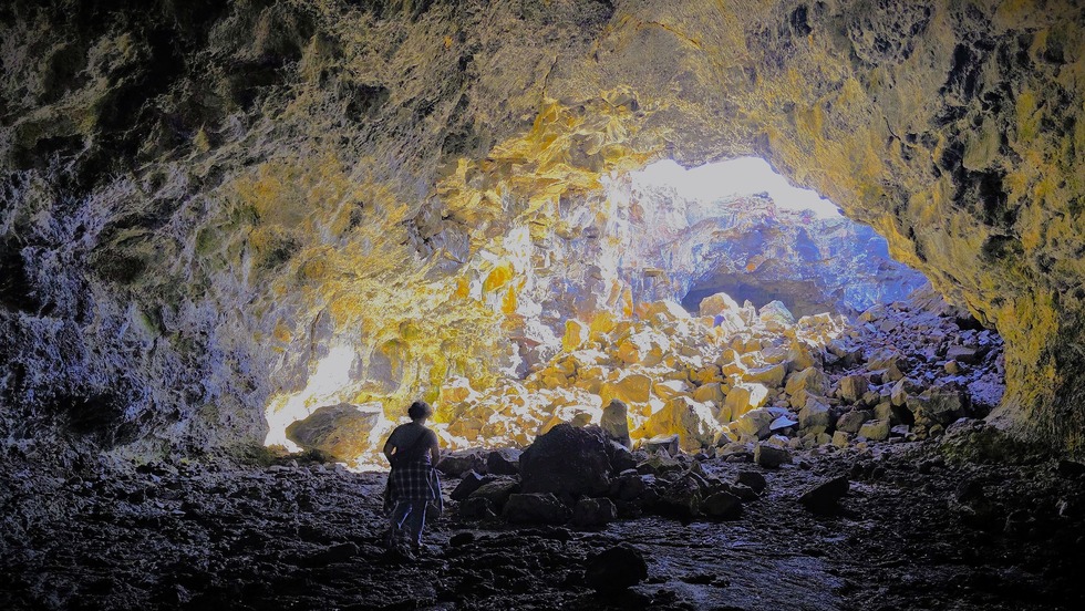The floor is covered in a massive "breakdown pile"—large, jagged blocks of basalt that fell from the ceiling thousands of years ago. These rocks are difficult to navigate, which is why the park recommends sturdy footwear for this specific cave.