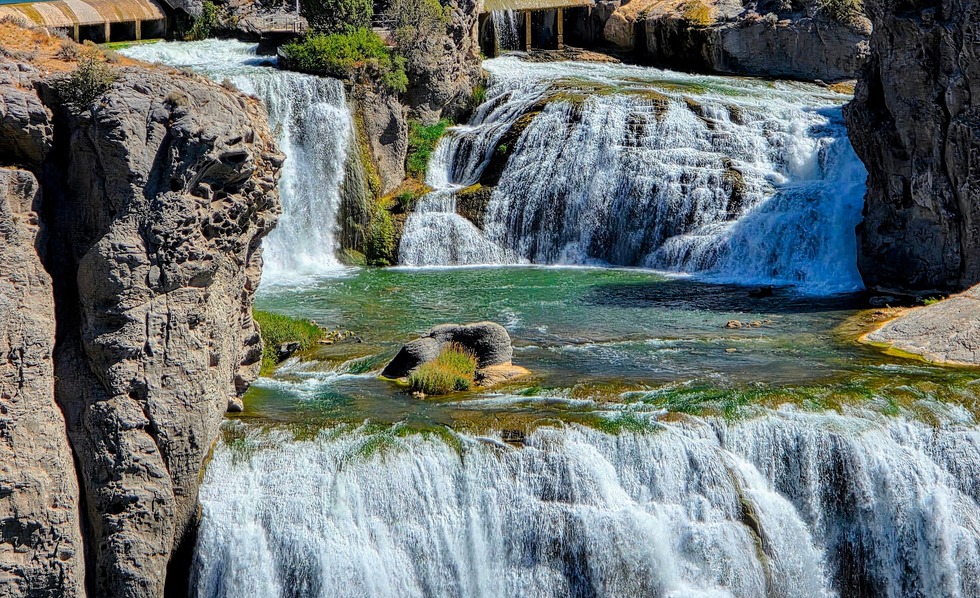 Because the Shoshone Falls canyon lies lower in elevation than the surrounding terrain, groundwater is forced to the surface via large springs in the canyon walls. Despite the almost total diversion of the river upstream from Milner Dam, these springs can provide up to 3,000 cu ft/s (85 m3/s) of water to the falls.