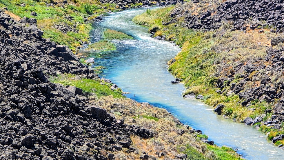 Malad River flowing through the steep, rocky Malad Gorge, which is part of Thousand Springs State Park in Idaho.