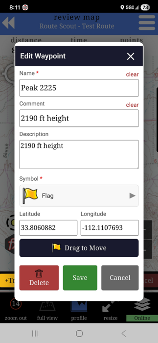 Waypoint editing