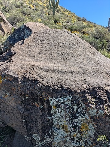 Highly decorated boulder though difficult to see in the lighting and because it was on the top face which was hard to reach
