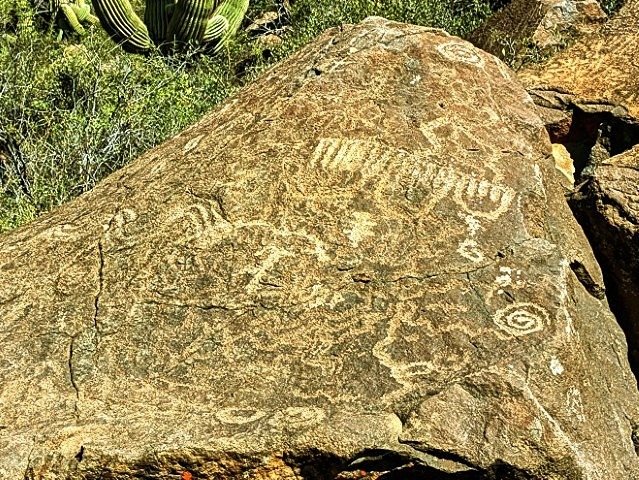Close up of busy boulder in front of the tall man site