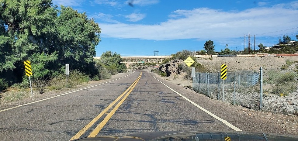 On the road near Hayden. There's a pipeline crossing above the road which must be used for the mining operation.
