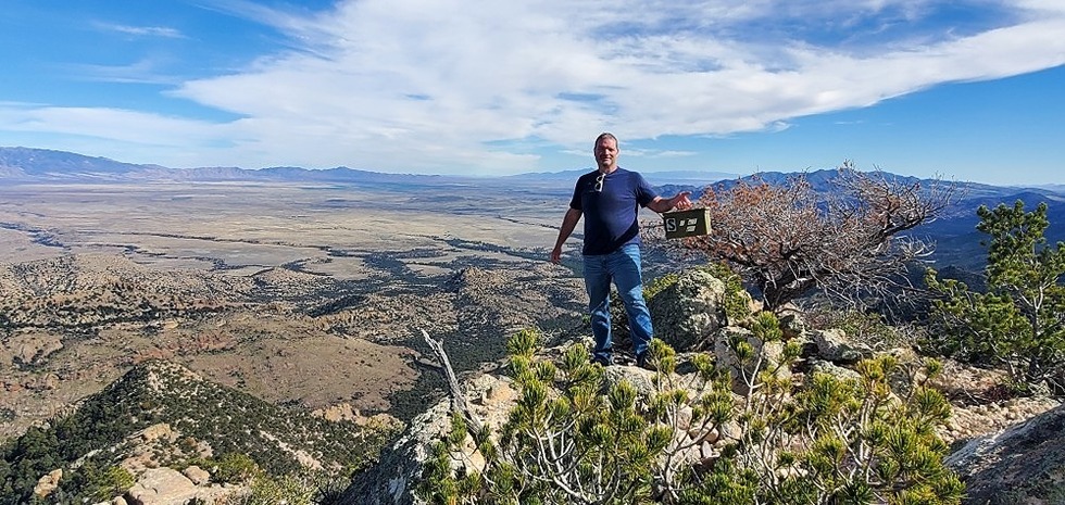 Mike on Sunset peak holding ammo box
