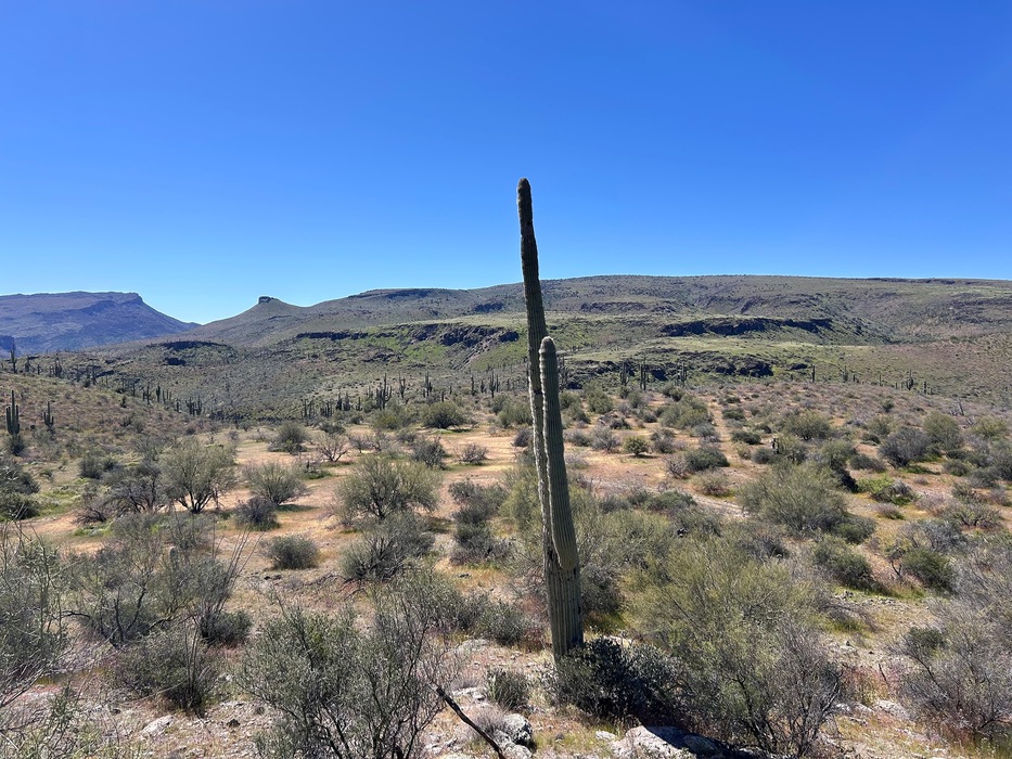 The clear cut path to the right of the cactus going out to the mesas edge is intriguing…I followed it and came up empty handed.