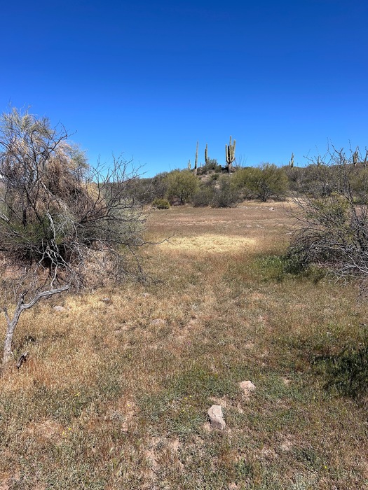 I assume someone had a tent set where the grass is yellow. I climbed to the top of the small hill in the backdrop since the pottery was found in the grassy area. I thought maybe it had washed down from there, but I was wrong.