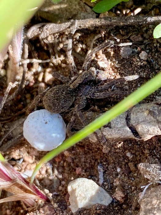 Babies soon to be on board....this wolf spider is carrying around an egg sack.