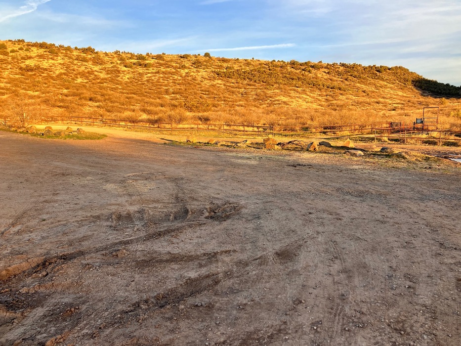 Plenty of parking at the TH. Looking northward you can see two trail gates. The one on the right is the Camp Verde #545, an OHV trail. The one on the left is Copper Falls #504