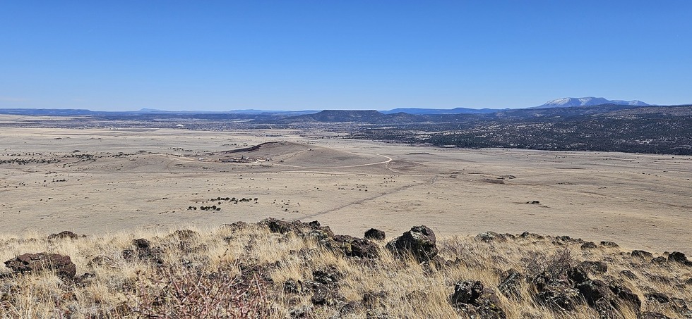 In the foreground, on the side of the little hill, is the town dump. Beyond are Springerville and Eagar. Escudilla looms to the right.