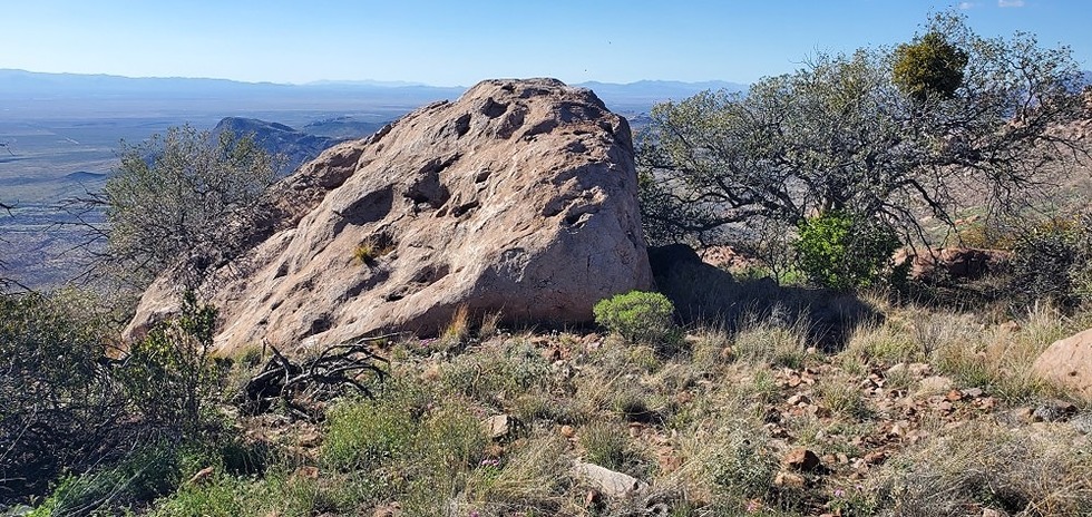 Looking at a huge boulder