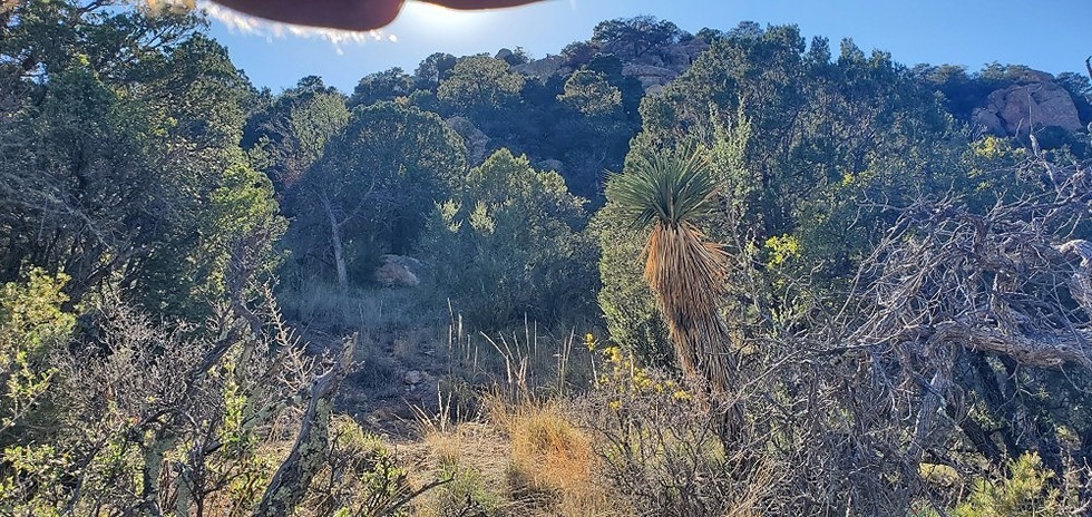 I used my hand to block out the sun. Looking up at the high ridgeline heading to Bruno peak