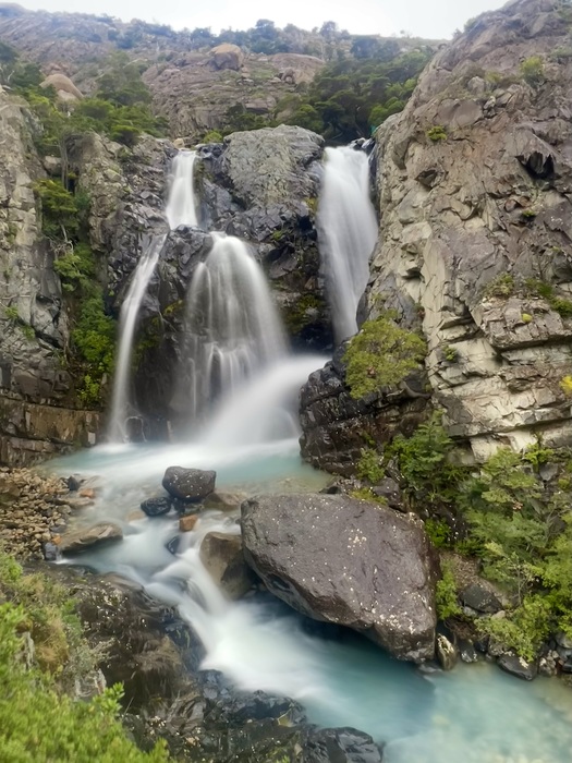 Waterfall behind our cabin at the Cuernos Refugio