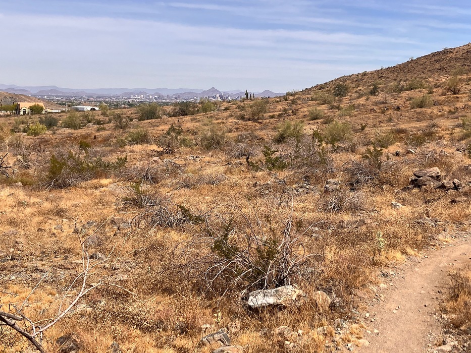 The beginning of the 4 mile trek back to the TH. Partial view of downtown Phoenix and Piestewa Peak